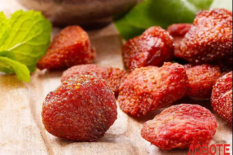 第二階段:溫度設(shè)定在60℃,烘6-8小時(shí),并且需要每2-3小時(shí)翻一次,直至含水量達(dá)20%;干燥回軟:溫度設(shè)定30℃-35℃,溫烘12小時(shí)左右,待草莓含水量達(dá)14%即可。
