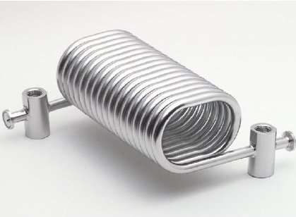 套管式使用方便,管接口易泄露與板換、高效罐相比,套管式熱交換器結(jié)構(gòu)就比較簡單,是由兩種尺稱實心高寸不同的標準管連接而成的同心圓套管,外面的叫殼程,內(nèi)部的叫管程,水和冷媒可在殼程和管程內(nèi)逆向流動以達到換熱的效果。套管式熱交換器具有換熱強勁、安裝簡單、經(jīng)久耐用等優(yōu)點,而且外形結(jié)構(gòu)多樣,可以串聯(lián)、并聯(lián)、也可以進行雙盤繞,來滿足不同機組要求。然而,套管式熱交換器管接頭比較多,各廠商焊接技術(shù)參差不齊,時間一長接口容易出現(xiàn)問題,容易造成泄漏。而且占地面積比較大,檢修、清洗和拆卸也都比較麻煩。市場上套管式換熱器的內(nèi)外管材質(zhì)主要采用紫銅管或不銹鋼管,而華鑫源同軸套管式換熱器外管材質(zhì)采用碳鋼,內(nèi)管根據(jù)水質(zhì)不同,合理靈活地采用紫銅、銅鎳合金、鈦、不銹鋼等金屬。
