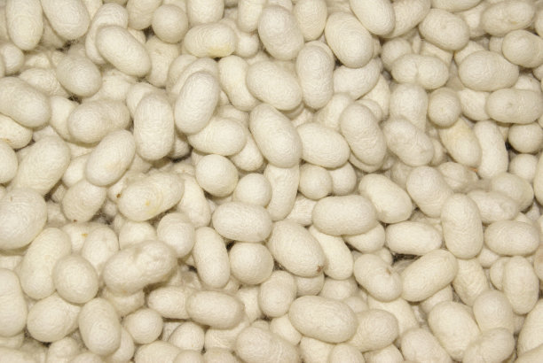 蠶繭是指桑蠶的繭。桑蠶蛹期的囊形保護(hù)層,內(nèi)含蛹體。繭層可以繅絲,繭衣及繅制后的廢絲可作絲棉和絹紡原料。蠶繭呈長橢圓形、橢圓束腰形、球形或紡錘形等不同形狀,或中部稍縊縮,繭有白、黃、淡綠、肉紅等顏色,長約3- 4厘米,直徑1.7- 2.1厘米,表面白色,有規(guī)則皺紋,并有附著的蠶絲,呈絨毛狀。