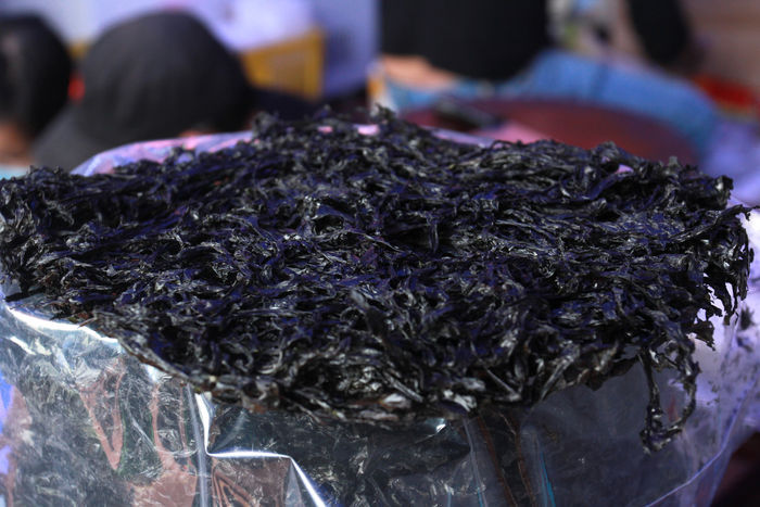 紫菜,是在海中互生藻類的統(tǒng)稱。紅藻綱,紅毛菜科。藻體呈膜狀,稱為葉狀體。紫色或褐綠色類而異。紫菜屬海產(chǎn)紅藻。葉狀體由包埋于薄層膠質(zhì)中的一層細(xì)胞組成,深褐、紅色或紫色。紫菜困著器盤狀,假根絲狀。生長于淺海潮間帶的巖石上。種類多,主要有條斑紫菜、壇紫菜、甘紫菜等。中國沿海地區(qū)已進(jìn)行人工栽培。21世紀(jì)初中國紫菜產(chǎn)量躍居世界第位。富含蛋白質(zhì)和碘、磷、鈣等。供食用和藥用。