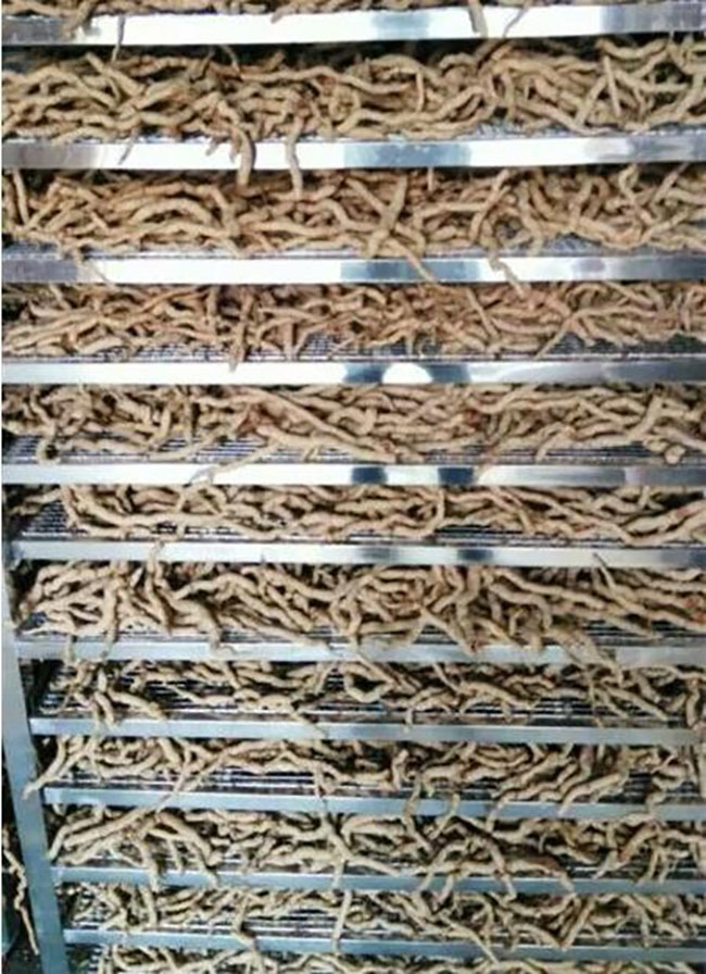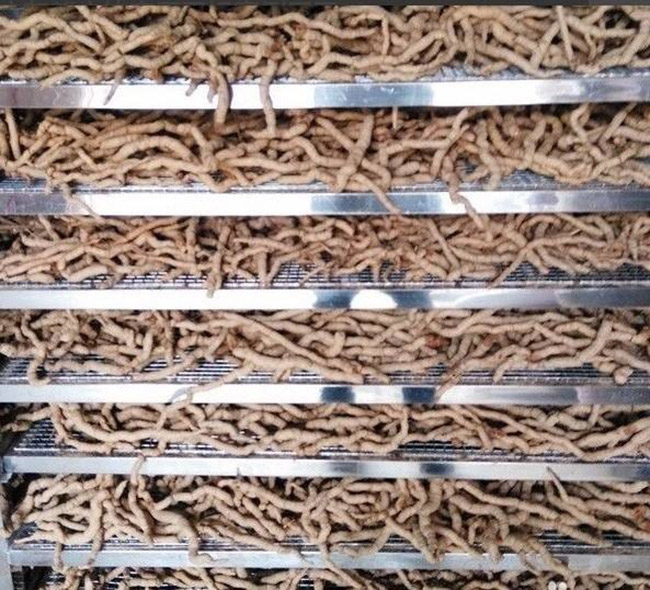 相比較傳經(jīng)的日曬或土爐加工,使用熱泵型的巴戟天烘干機(jī),其好處在哪里呢?巴戟天采收極有講究,工具應(yīng)清潔無(wú)污染,起挖時(shí)要小心翼翼,不能斷根、刮傷根皮。挖出之后,需要立即抖去泥土,剔除破損、腐爛變質(zhì)的部分,記錄采收地點(diǎn)和日期,再送去加工場(chǎng),清洗、修剪、烘干、抽芯。加工好的巴戟天,被送往陰涼庫(kù)妥善保存。根據(jù)藥典規(guī)定,巴戟天半成品水分含量本應(yīng)在15%以下,但因?yàn)槟戏娇諝鉂駶?rùn),要求更加嚴(yán)格,水分含量必須控制在10-11%。在對(duì)巴戟天進(jìn)行烘干加工前,須首先把巴戟洗干凈,切斷,然后放開水里面燙一下,再用篩盤裝起來(lái)推進(jìn)熱泵烘干機(jī)所匹配的烘干房中,用60~65的溫度對(duì)巴戟進(jìn)行烘干,十幾個(gè)小時(shí)候后就可以取出烘干了的,烘干效果很好干巴戟了。