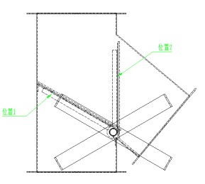 轉(zhuǎn)動(dòng)分流閥的手柄,可實(shí)現(xiàn)干燥機(jī)入糧與出糧方向的控制,如圖所示,當(dāng)手柄處于圖中位置1時(shí),為入糧方向,當(dāng)把手柄轉(zhuǎn)換至位置2時(shí),為出糧方向。