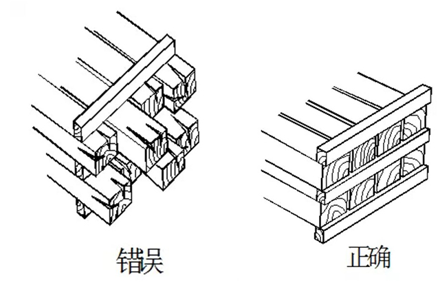 注意不可把木材排放成下面這種,這是一種錯誤的排放方法。