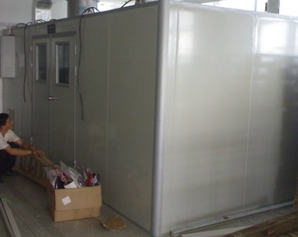 (1) 房體材質(zhì):房體采用雙面防火彩鋼巖棉保溫板和***型材裝配而成(現(xiàn)場(chǎng)組裝),老化室, 六面保溫,平面無(wú)痕,外形美觀。