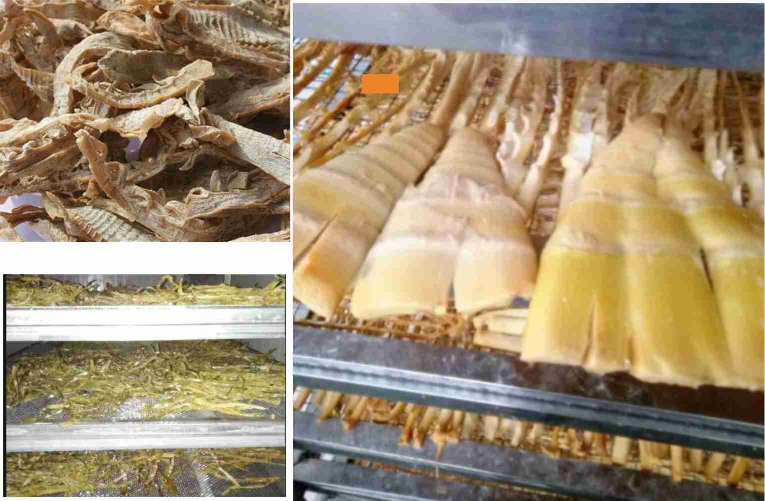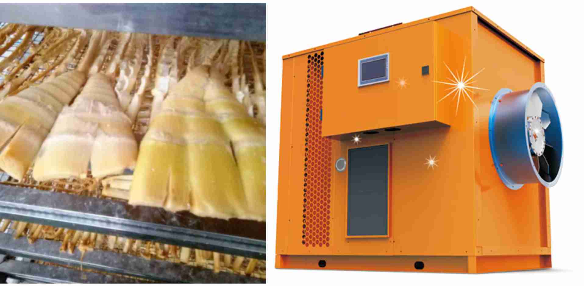 烘干房相對(duì)濕度保持在15%,約10小時(shí)左右,直到竹筍脫水干燥成黃色或金黃色。