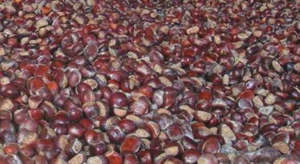 用清水將栗果清洗干凈,漂洗掉雜質(zhì),然后按栗果大小分級(jí),分別進(jìn)行加工處理。蒸煮液配方為八角茴香80g、桂皮50g、丁香15g、花椒15g、甘草20g、食鹽400g、白糖250g、水10kg。栗果外果皮為革質(zhì),一般煮制或浸泡很難入味,可采用簡(jiǎn)易真空滲入法,將調(diào)料按配方加水煮沸30分鐘,制成調(diào)料液,加入栗果煮熟。