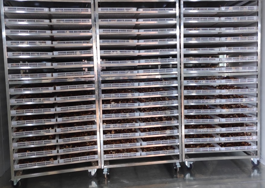 食用菌烘干機(jī)加工出的蘑菇產(chǎn)品品質(zhì)好,檔次高,烘干房無污染,熱效率高。本機(jī)占地面積小、投資小、能效率高、產(chǎn)量大、可連續(xù)運(yùn)轉(zhuǎn);結(jié)構(gòu)優(yōu)良﹑工作簡單。配合IPAD風(fēng)格的無人值守系統(tǒng),設(shè)定好溫度和時(shí)間后,機(jī)器自動(dòng)運(yùn)轉(zhuǎn),不需要派人看守。
