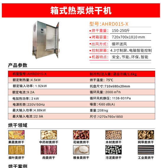 用平流風(fēng)烘干運(yùn)行,另外根據(jù)果蔬的特性(初始水分含量高、溫度M感性高,糖分含量高),通常溫度控制在50-60℃,熱泵蒸