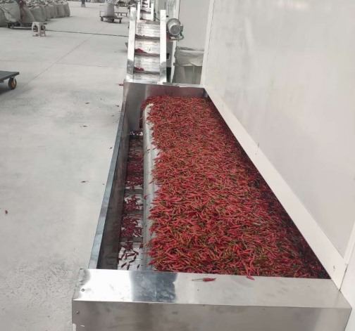 1、流水線辣椒烘干,我們使用流水線烘干辣椒,這種方式烘干辣椒,可以大量地進(jìn)行烘干辣椒,一般這邊烘干的方式是10~20噸左右的辣椒烘干,這種烘干的方式一樣烘干的時(shí)間在10多個(gè)小時(shí)左右這樣。