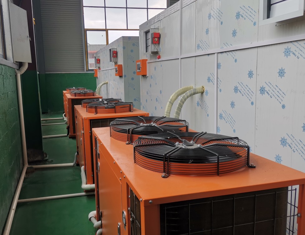 高溫?zé)岜煤娓蓹C(jī)組,主要由翅片式蒸發(fā)器(外機(jī))、壓縮機(jī)、翅片冷凝器(內(nèi)機(jī))和膨脹閥四部分組成,通過讓工質(zhì)不斷完成蒸發(fā)(吸取室外環(huán)境中的熱量)→壓縮→冷凝(在室內(nèi)烘干房中放出熱量)→節(jié)流→再蒸發(fā)的熱力循環(huán)過程,從而將外部低溫環(huán)境里的熱量轉(zhuǎn)移到烘干房中,冷媒在壓縮機(jī)的作用下在系統(tǒng)內(nèi)循環(huán)流動(dòng)。