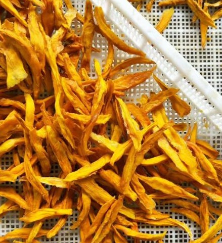 (2)烘干的中期:溫度可控制在60度左右,烘房的濕度可調(diào)為40%,時(shí)間為12個(gè)小時(shí);這個(gè)時(shí)候的芒果已經(jīng)過定色,不需要溫度那么高,但濕度還是比較大,應(yīng)大量排濕;