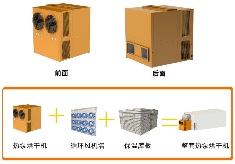 那么像我們平常的熱泵烘干機(jī)設(shè)備,如大型的熱泵烘干機(jī)設(shè)備是需要進(jìn)行配置烤房才可以進(jìn)行烘干物料的,因?yàn)闊岜?,它僅僅只是一個(gè)提供熱源的設(shè)備而已。