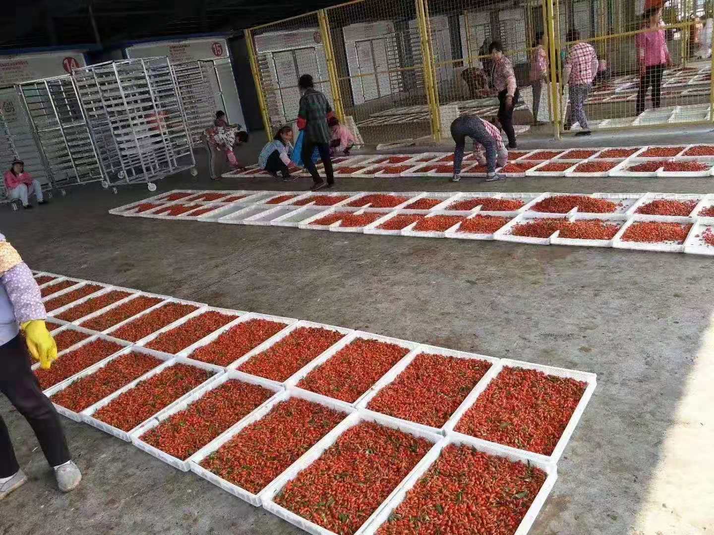 我們將我們的枸杞清洗、處理好了之后就可以進行放到我們的一個托盤,然后就可以推進我們的一個烤房來烘干了,我們再烘干枸杞的時候需要注意是的,我們需要進行分階段來給枸杞來烘干。系統(tǒng)的烘干溫度,我們設(shè)置進風口的溫度在55~60℃,進風濕度控制在35-45%,風速控制在0.20-0.35m/s左右,烘干時間控制在33-35小時,物料即可干透。