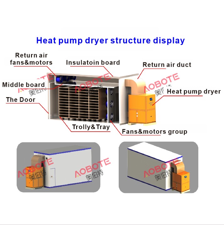 熱泵烘干機(jī)設(shè)備配套是指,我們的熱泵烘干機(jī)設(shè)備與熱泵烘干機(jī)設(shè)備的烤房,他們進(jìn)行結(jié)合起來(lái),熱泵烘干機(jī)只是我們的一個(gè)熱源,想要進(jìn)行烘干,還需要配置我們的一個(gè)烘干烤房,才能進(jìn)行烘干,烤房?jī)?nèi)部再配置相應(yīng)的一個(gè)推出進(jìn)行存放我們的烘干物料。