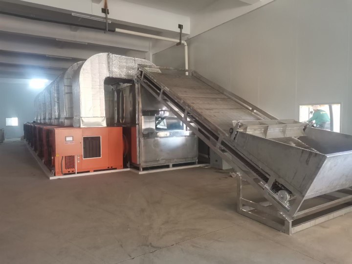 蔬菜脫水干燥機(jī)分別有加料器、干燥床、熱交換器及排濕風(fēng)機(jī)等主要部件組成。干燥機(jī)工作時(shí).冷空氣通過(guò)熱交換器進(jìn)行加熱,采用科學(xué)合理的循環(huán)方式,使熱空氣穿流通過(guò)床面上的被烘干物料進(jìn)行均勻的熱質(zhì)交換,機(jī)體各單元內(nèi)熱氣流在循環(huán)風(fēng)機(jī)的作用下進(jìn)行熱風(fēng)循環(huán),后排出低溫高濕度的空氣,平穩(wěn)高,效地完成整個(gè)干燥過(guò)程。