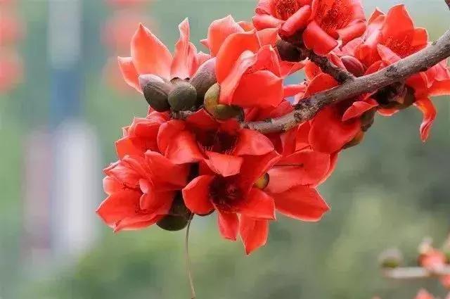 木棉花是南方的特產(chǎn),是廣州市、高雄市以及攀枝花市的市花?;ǖ袈浜?,樹(shù)下落英紛陳,花不褪色、不萎靡,很英雄地道別塵世。木棉花為什么叫"英雄花"?因?yàn)樗_(kāi)得紅艷但又不媚俗,它的壯碩的軀干,頂天立地的姿態(tài),英雄般的壯觀,花瓣的顏色紅得猶如壯士的風(fēng)骨,色彩就像英雄的鮮血染紅了樹(shù)梢。