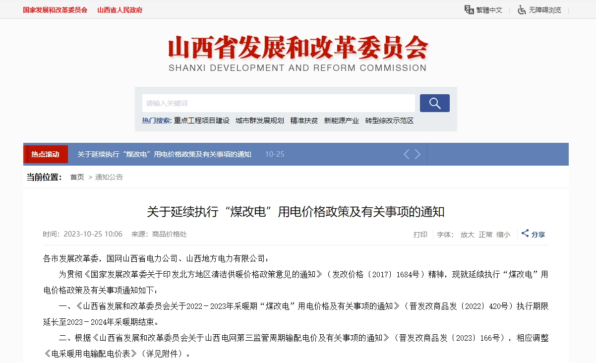 二、根據(jù)《山西省發(fā)展和改革委員會關(guān)于山西電網(wǎng)第三監(jiān)管周期輸配電價及有關(guān)事項的通知》(晉發(fā)改商品發(fā)〔2023〕166號),相應(yīng)調(diào)整《電采暖用電輸配電價表》(詳見附件)。