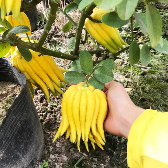 佛手屬于常綠灌木或小喬木,高度可達(dá)一丈有余,莖葉基部有著長(zhǎng)約 6 厘米的硬銳刺,新枝呈三棱形。其單葉互生,為長(zhǎng)橢圓形,上面有透明油點(diǎn)。花大多在葉腋間生長(zhǎng),通常數(shù)朵聚成一束,其中雄花數(shù)量較多,部分是兩性花,花冠分為五瓣,顏色為白色且微微帶有紫暈。佛手在春分至清明期間第一次開花,此時(shí)雄花居多,所結(jié)的果實(shí)較??;另一次開花在立夏前后,果實(shí)于 9 - 10 月成熟,成熟后的果實(shí)較大,可供藥用,其果皮鮮黃,有褶皺且富有光澤,頂端分叉,常常張開如手指的形狀,這也是它被稱為佛手的原因,果肉呈白色,無(wú)種子。佛手通常被用作中藥,又因其果實(shí)形狀奇特,也常被當(dāng)作觀賞植物。此外,佛手還被大量制作成涼果以供食用和銷售。
