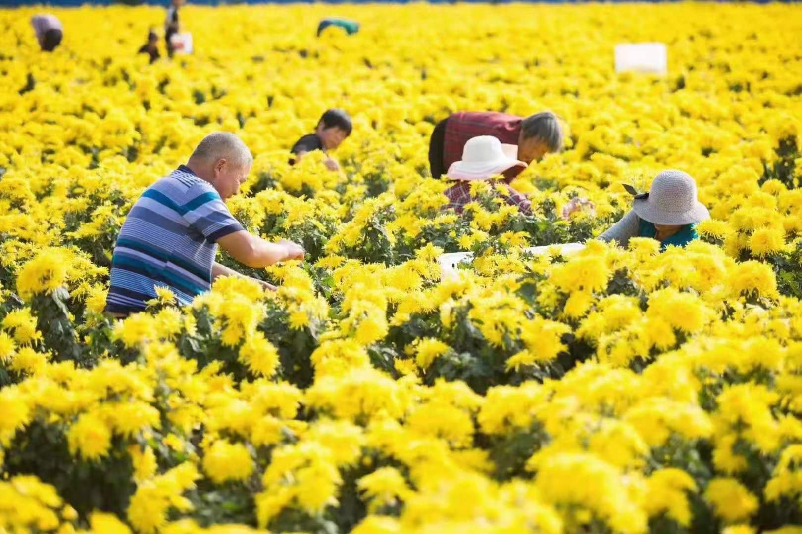 采摘挑選: 選擇晴天采摘飽滿、無病蟲害的菊花,去掉雜質(zhì)和花梗。