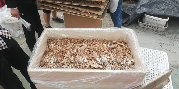 用指甲頂壓菇蓋感覺堅硬并稍有指甲痕跡、翻動嘩嘩有聲時,表明香菇干度已夠,可出房、冷卻、包裝、貯運。