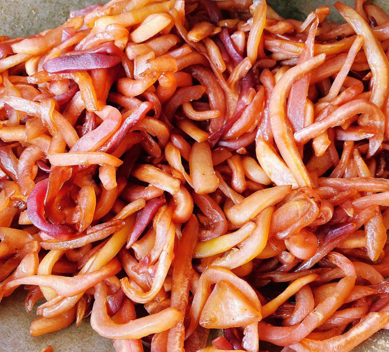 將從烘干房出來產品放置在20℃-25℃的溫度環(huán)境中進行冷卻12-14小時,使產品的水分得到充分的衡,同時使產品的口感更加柔軟。將冷卻過的產品薄薄的白糖粉以保持產品的干爽,然后按量分裝于包裝袋中得到成品。