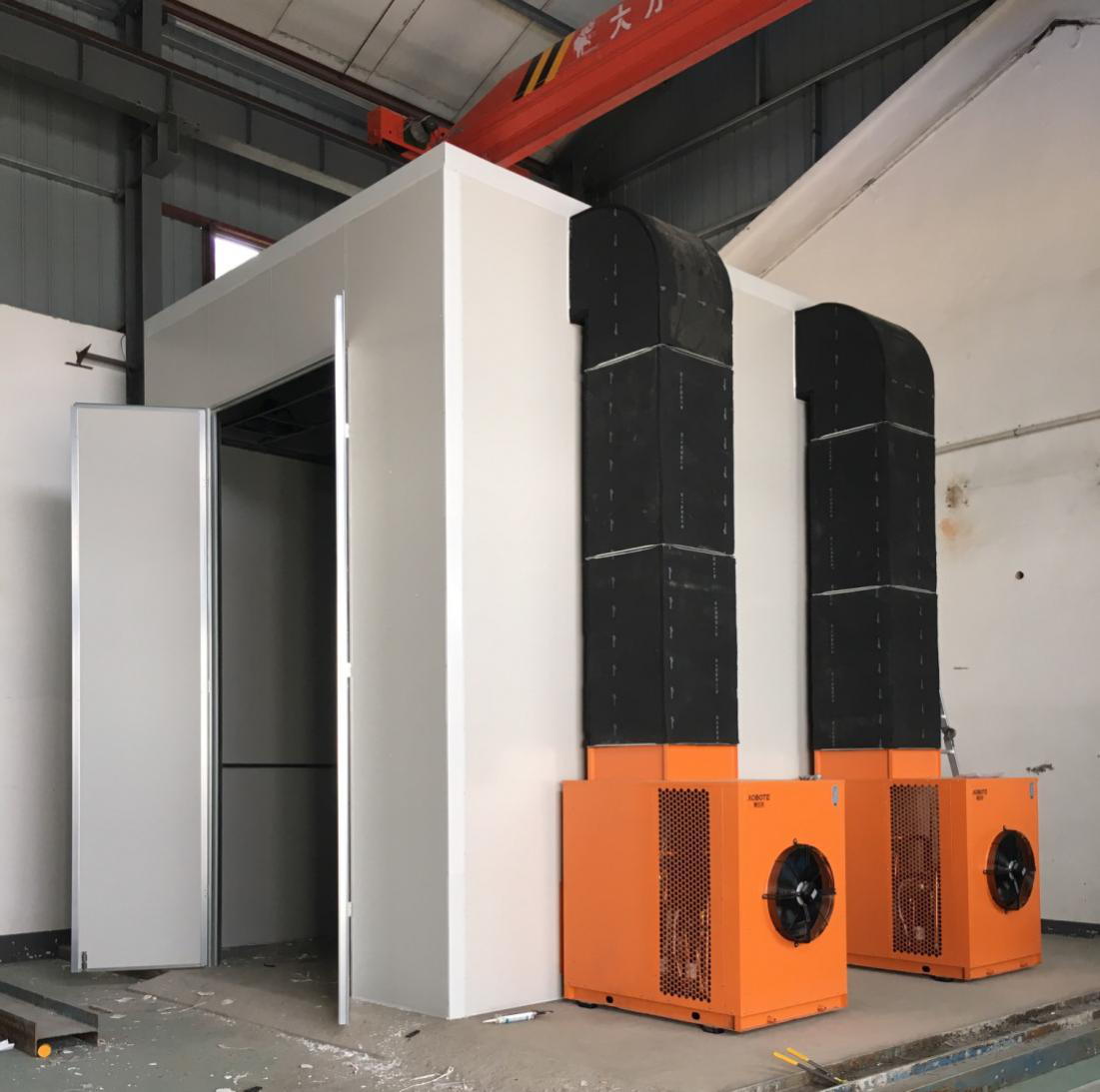 高溫?zé)岜眉埞芎娓稍O(shè)備主要運(yùn)用于工業(yè)紙管烘干、紙筒烘干及紙制品烘干。 設(shè)備的選型、烘干工藝需要根據(jù)紙管的類型、大小定制,以提供紙管的烘干品質(zhì)。 奧伯特江蘇工業(yè)紙管烘干項(xiàng)目采用了一套7P整體式上送風(fēng)低溫機(jī),烘房規(guī)格為4.5*3*3.85米, 日烘烤量為5-8噸。