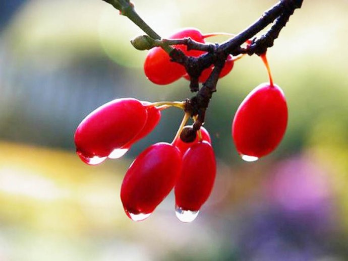 山茱萸落葉喬木或灌木,樹(shù)皮灰褐色,小枝細(xì)圓柱形,無(wú)毛。葉對(duì)生,紙質(zhì),上面綠色,無(wú)毛,下面淺綠色。葉柄細(xì)圓柱形,上面有淺溝,下面圓形。傘形花序生于枝側(cè),總苞片卵形,帶紫色,總花梗粗壯,微被灰色短柔毛,花小,兩性,先葉開(kāi)放,花萼闊三角形,無(wú)毛,花瓣舌狀披針形,黃色,向外反卷。雄蕊與花瓣互生,花絲鉆形,花藥楠圓形,花盤(pán)無(wú)毛,花梗纖細(xì)。核果長(zhǎng)橢圓形,紅色至紫紅色。