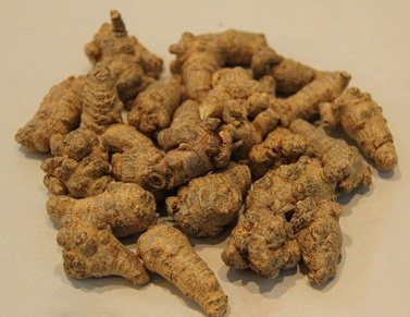 田七主根呈類圓錐形或圓柱形,長1-6厘米,直徑1-4厘米。表面灰褐色或灰黃色,有斷續(xù)的縱皺紋和支根痕。頂端有莖痕,周圍有瘤狀突起。體重,質(zhì)堅實,斷面灰綠色、黃綠色或灰白色,木部微呈放射狀排列。氣微,味苦回甜。筋條呈圓柱形或圓錐形,長2-6厘米,上端直徑約0.8厘米,下端直徑約0.3厘米。剪口呈不規(guī)則的皺縮塊狀或條狀,表面有數(shù)個明顯的莖痕及環(huán)紋,斷面中心灰綠色或白色,邊緣深綠色或灰色。